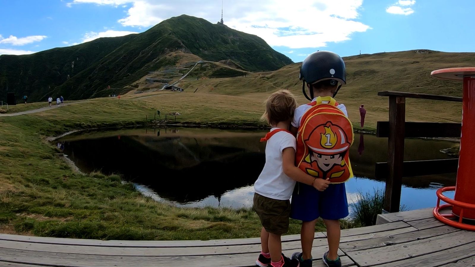 Voller Aufregung schauen Ihre Kinder zu, wie die Autos auf dem Parkplatz immer kleiner und kleiner werden. Gönnerhaft zeigt der grosse Bruder für die kleine Schwester auf das Auto.