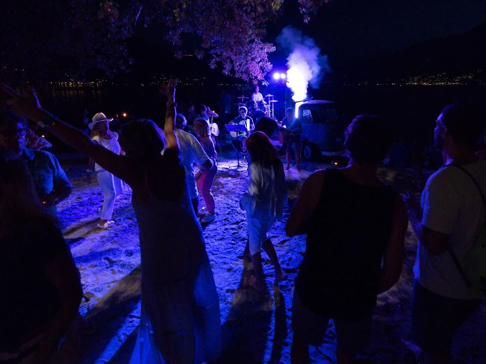 Den Lago Maggiore erleben. Andrea Pirro paddelt tagsüber mit seinen Gästen auf dem SUP-Brett zum Maggia-Delta, serviert abends leckere Cocktails, grilliert Luganighe und tanzt mit den Leuten zu Reggae im Sand.