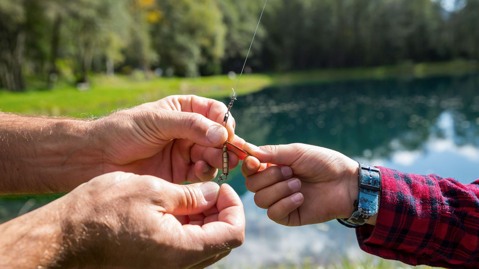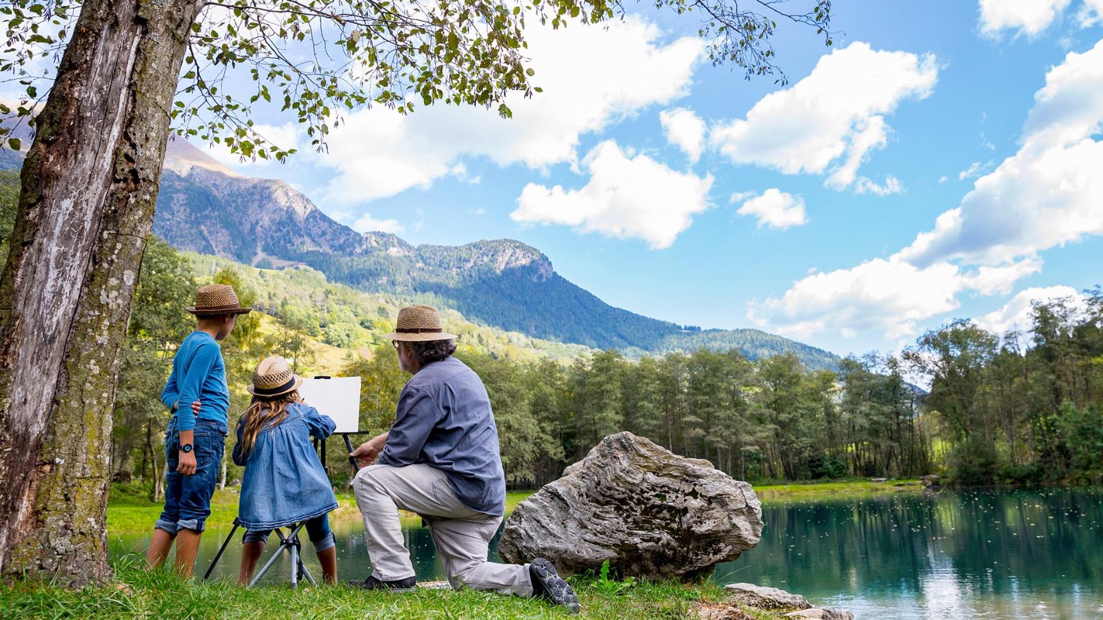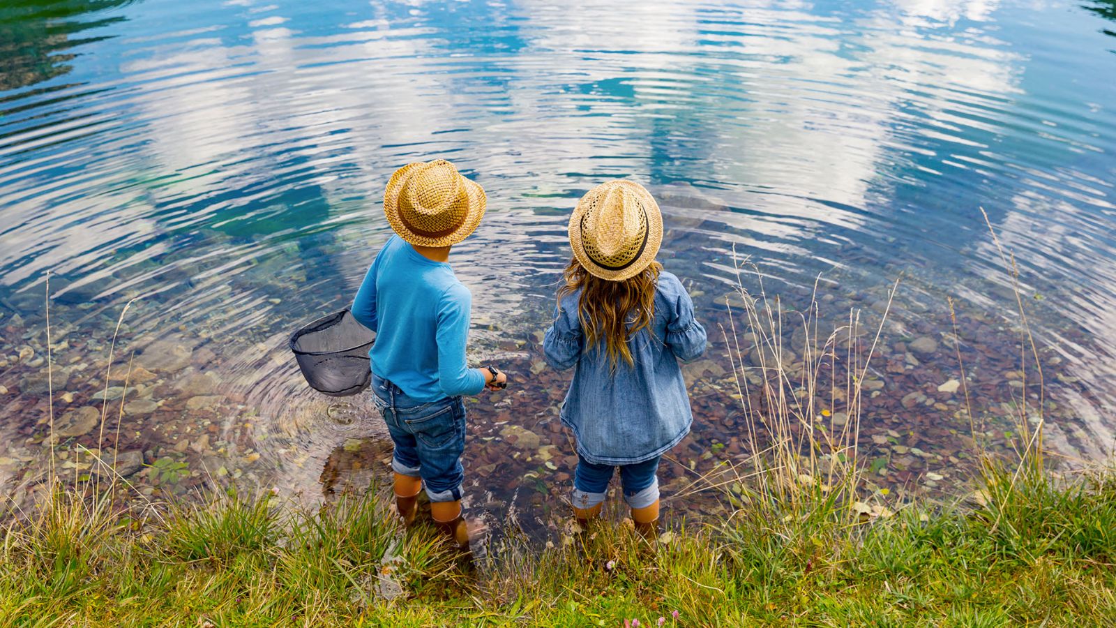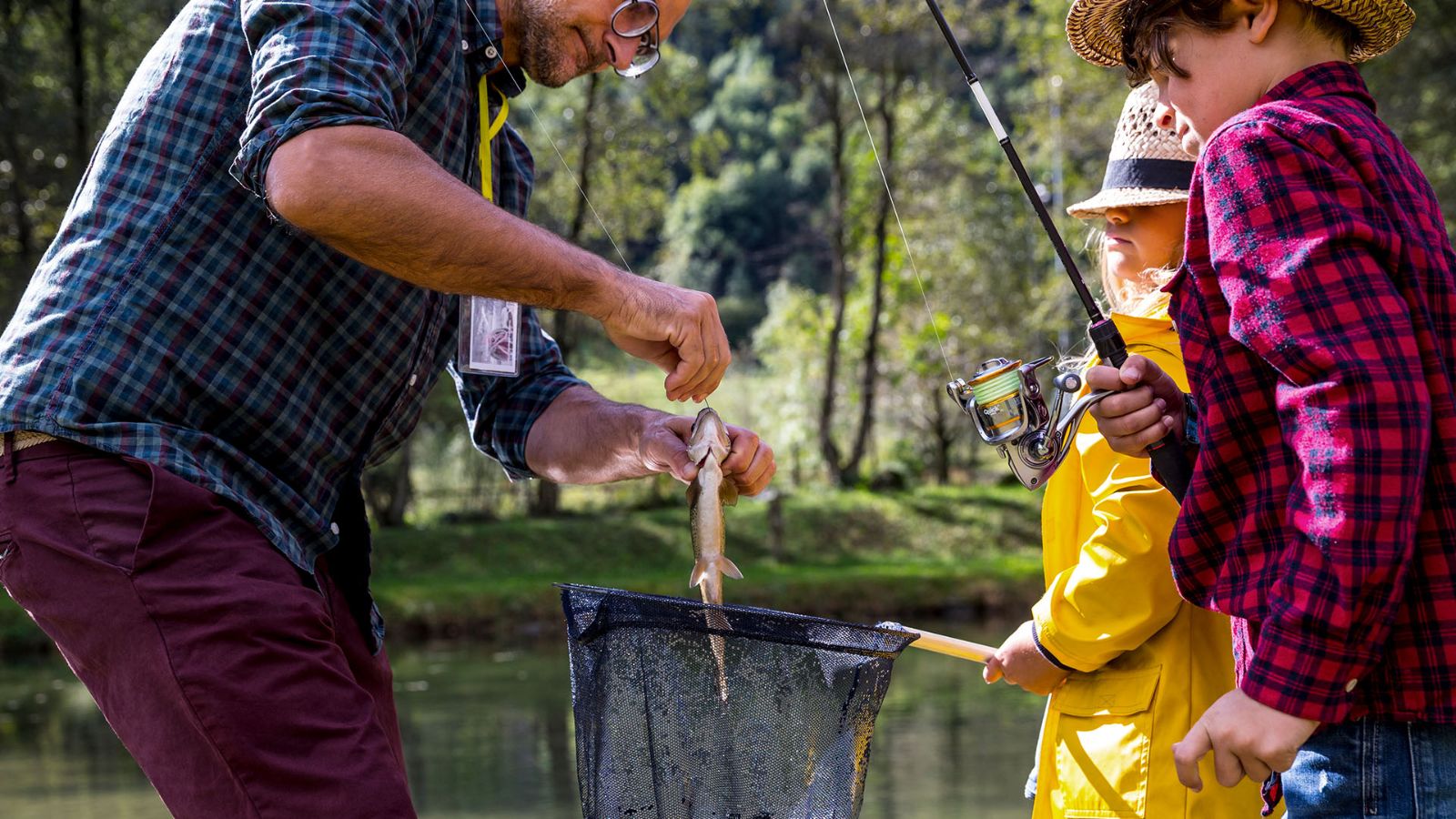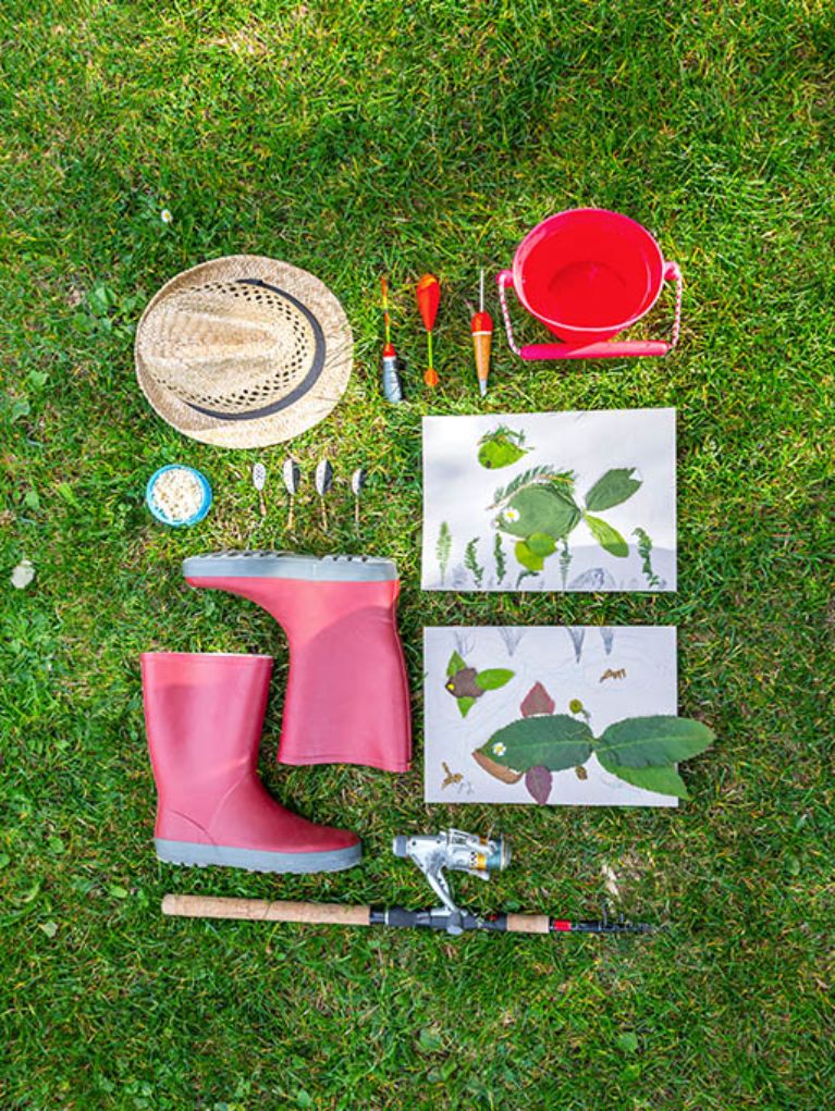 A fishing net and rod, rubber boots and fisherman's hat: that's all you need to enjoy a fun day with your family.