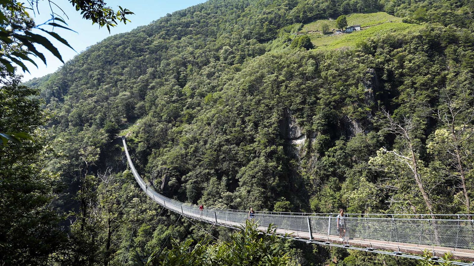 Les interstices qui séparent les planchettes de mélèze ne laissent aucune place à l’imagination: leur regard plonge sur les 130 mètres de vide de la crevasse. Mais pour le moment, vous êtes encore sur la terre ferme. Vous disposez encore d’un peu de temps. Vous avez consacré votre après-midi à la découverte du seul pont tibétain du Tessin.