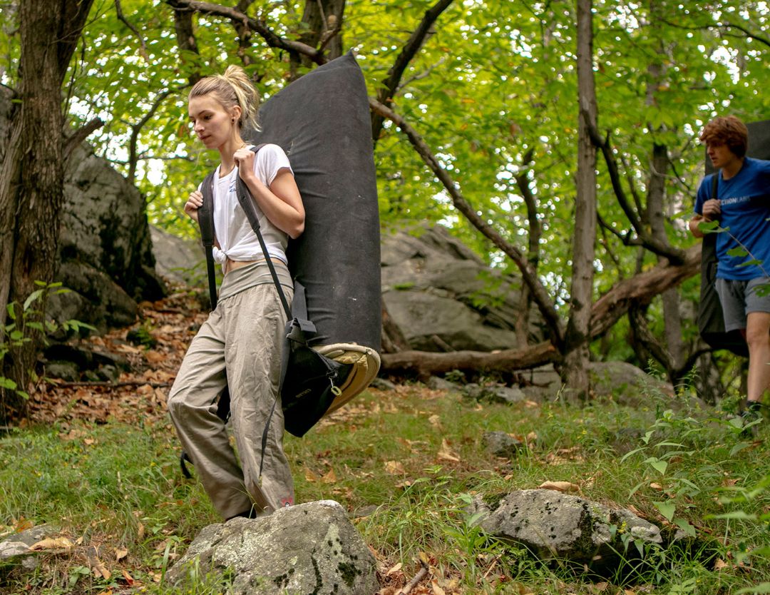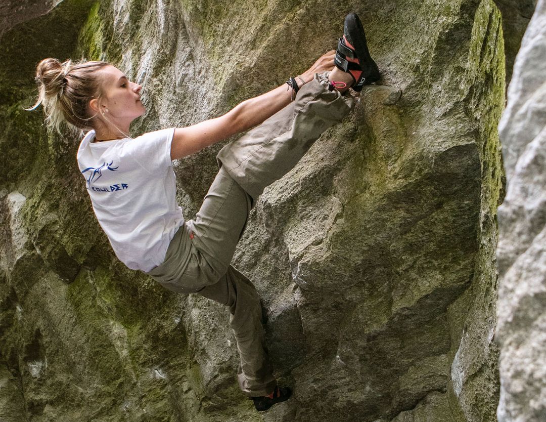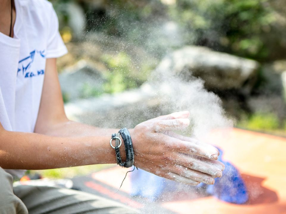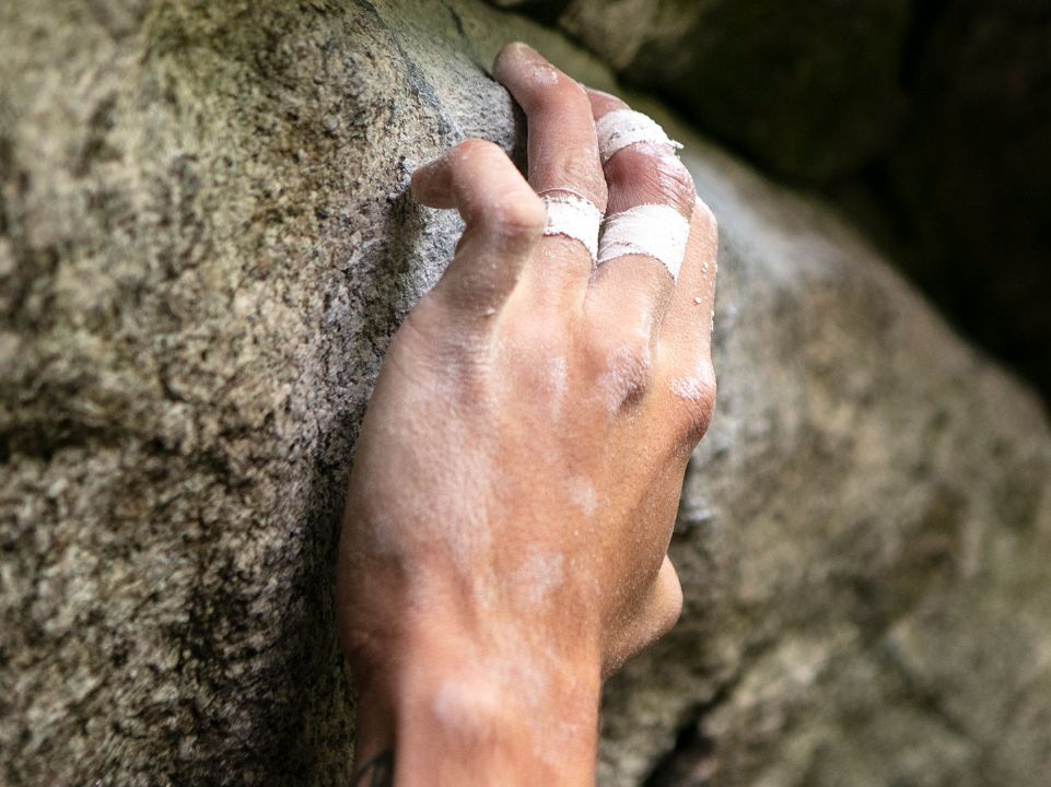 Magnésie sur les mains et pansements sur les doigts : le boulder fait travailler tout le corps.