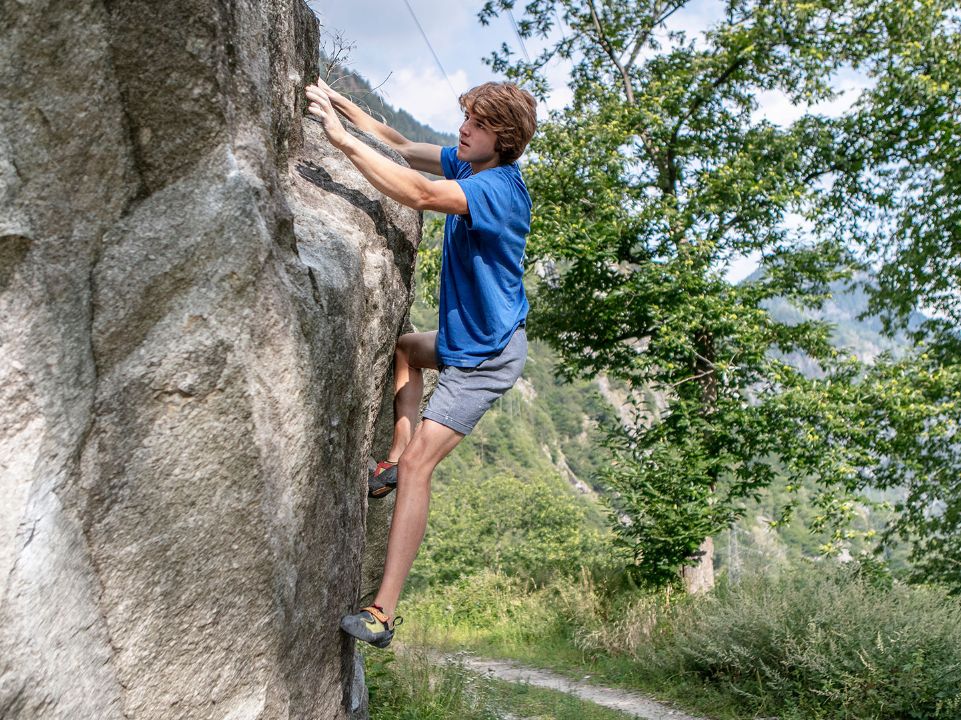 « Problèmes », un terme que généralement on n’aime pas, sauf en compagnie d’amateurs de boulder. Ici, plus un passage est riche en problèmes, mieux c’est. Au départ, la discussion avec Anja, Diego, Enea et Claudio semble un peu étrange, car on a l’impression de ne pas saisir de quoi l’on parle, mais vite fait leur enthousiasme et leur passion vous contaminent et l’on souhaite soudain partir à la recherche d’un beau rocher auquel s’affronter. Et en étant à Chironico, Cresciano, Brione Verzasca ou quelque part dans les vallées du Tessin, vous êtes au bon endroit !
